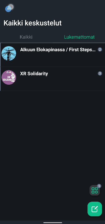 1. Avaa Element napauttamalla oman tilisi kuvaa näytön vasemmassa yläkulmassa, **Asetukset-**&#x76;alikko aukeaa.&#x20;